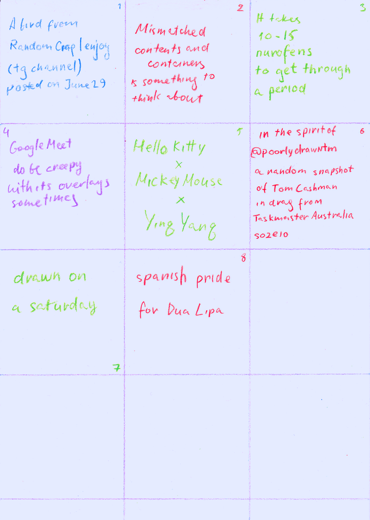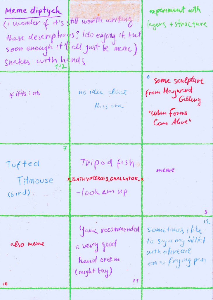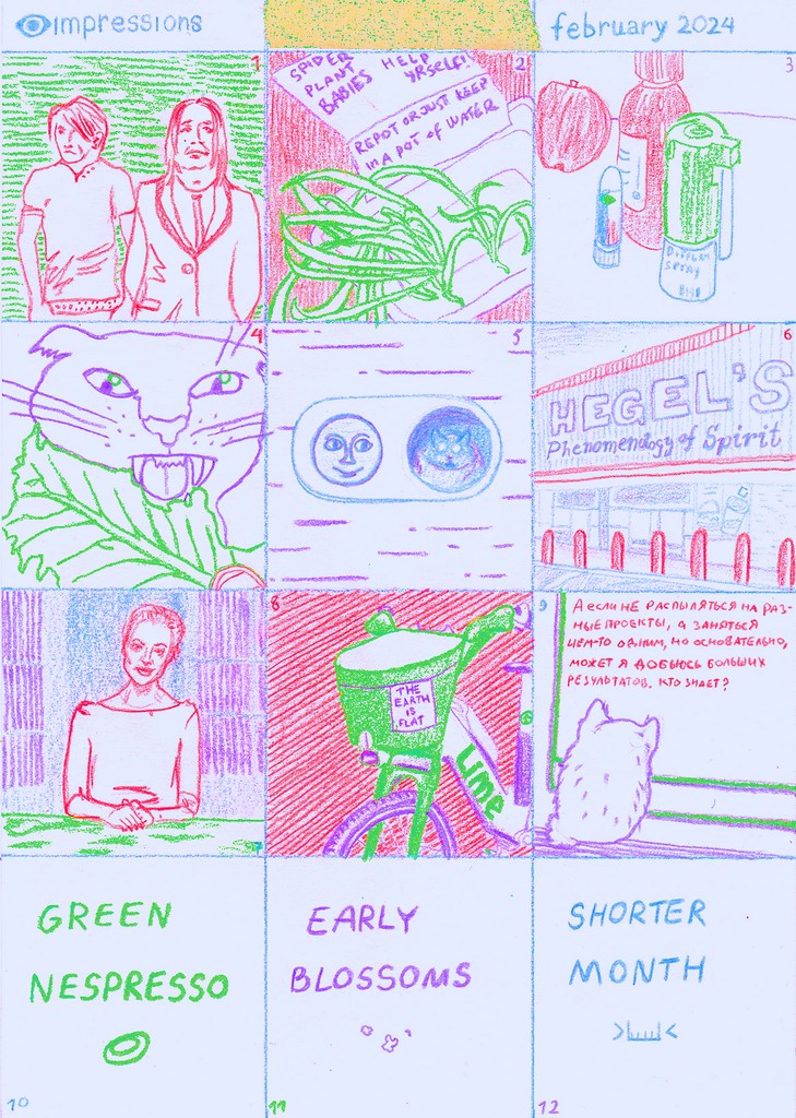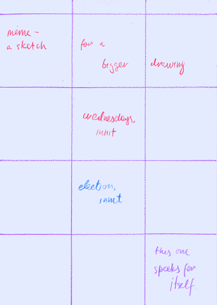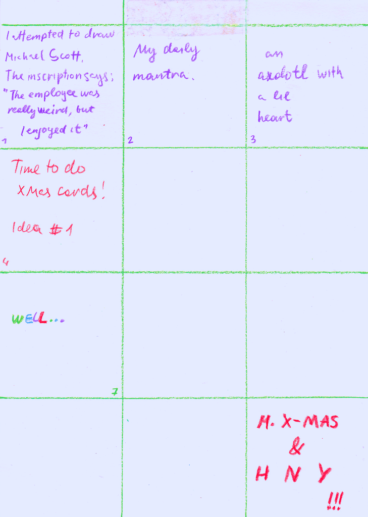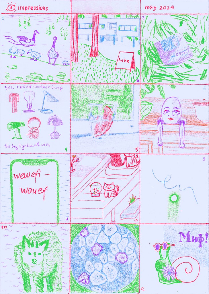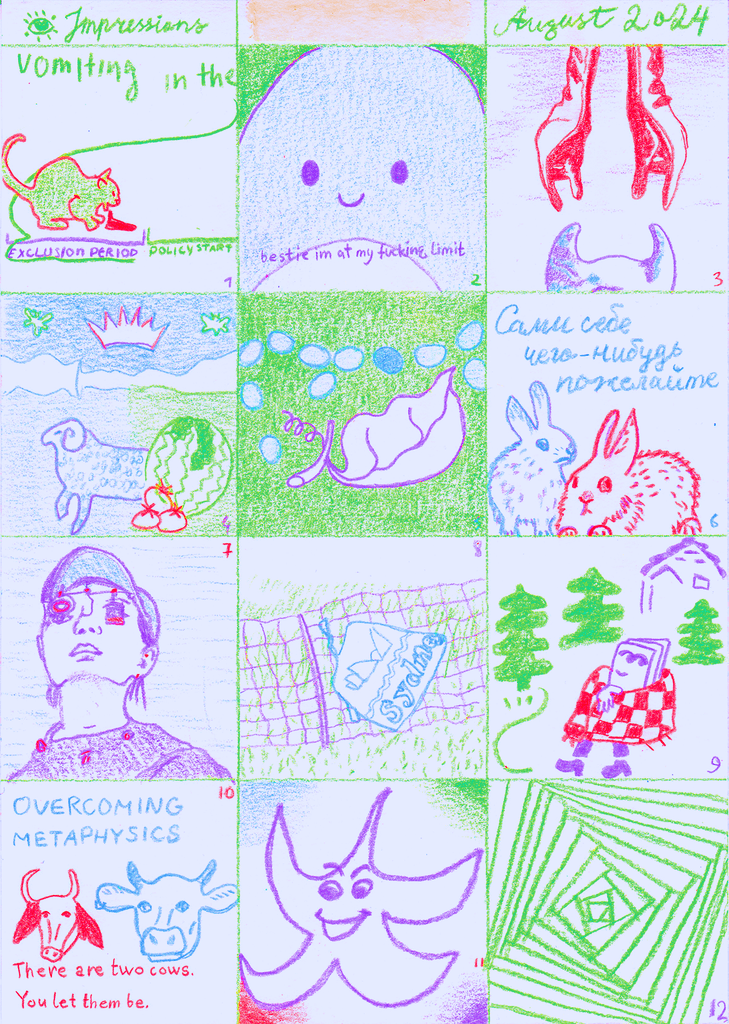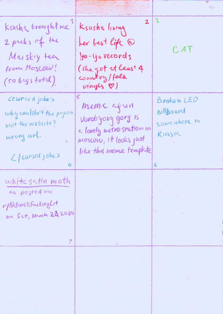 A visual diary of 2024, containing up to 12 squares a month, with notes for some squares on the reverse.