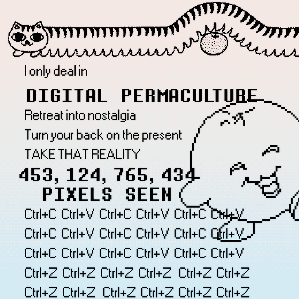 By using visual aesthetics of 2000s mobile phone interfaces, early blogs, animated clipart, and personal websites, the project attempts to transpose the present day internet’s hyperreal despair into the key of early internet’s low-res optimism – building an idiosyncratic link between the two moments in history.